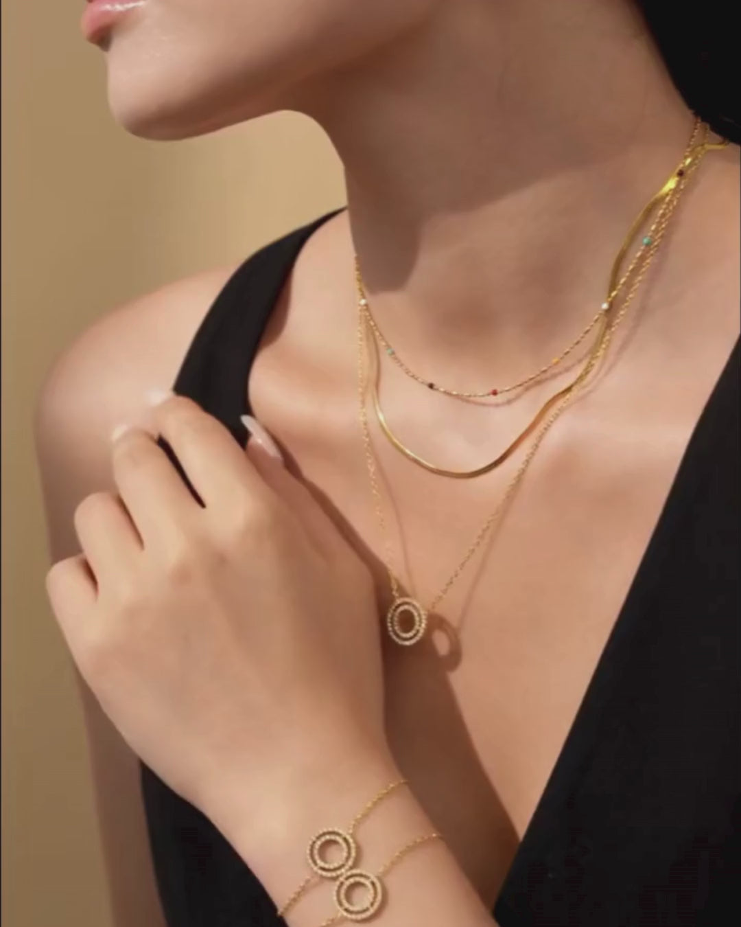 Ce bracelet raffiné en acier inoxydable plaqué or 18K incarne l’élégance et la symbolique du cercle : un lien sans fin, solide et lumineux. Orné de zircon scintillant, il apporte une touche de tendresse et de modernité à chaque tenue. Idéal pour un anniversaire ou une étape importante, il deviendra un repère affectif au quotidien.